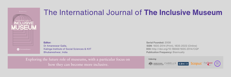 The International Journal of the Inclusive Museum is brought together by a shared concern for the future role of the museum and how it can become more inclusive. We seek to build an epistemic community to make linkages across disciplinary, geographic, and cultural boundaries. The journal is defined by our Research Network scope and concerns and motivated to build strategies for action framed by our shared themes and tensions.